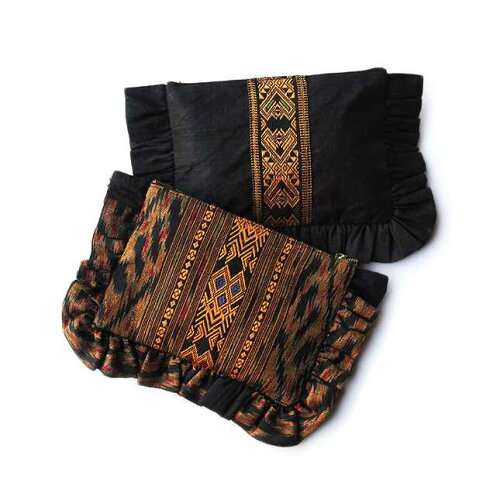 ARI BIJOUX LAOSILK & FABRIC FRILL CLUTCH ラオスの伝統織物をクラッチバッグとポーチに仕上げたものになります。