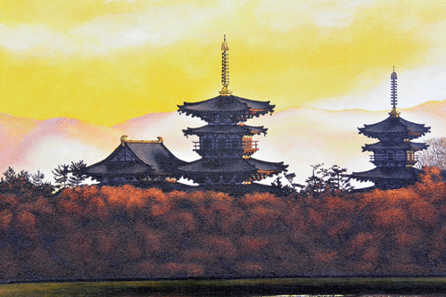 絵画 油絵F10 薬師寺 里中 游画【あす楽対応】【送料無料】【smtb-kd】