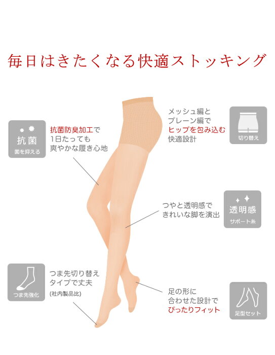 太ももから編み方が切り替わってお腹をサポートしてくれるタイプ。